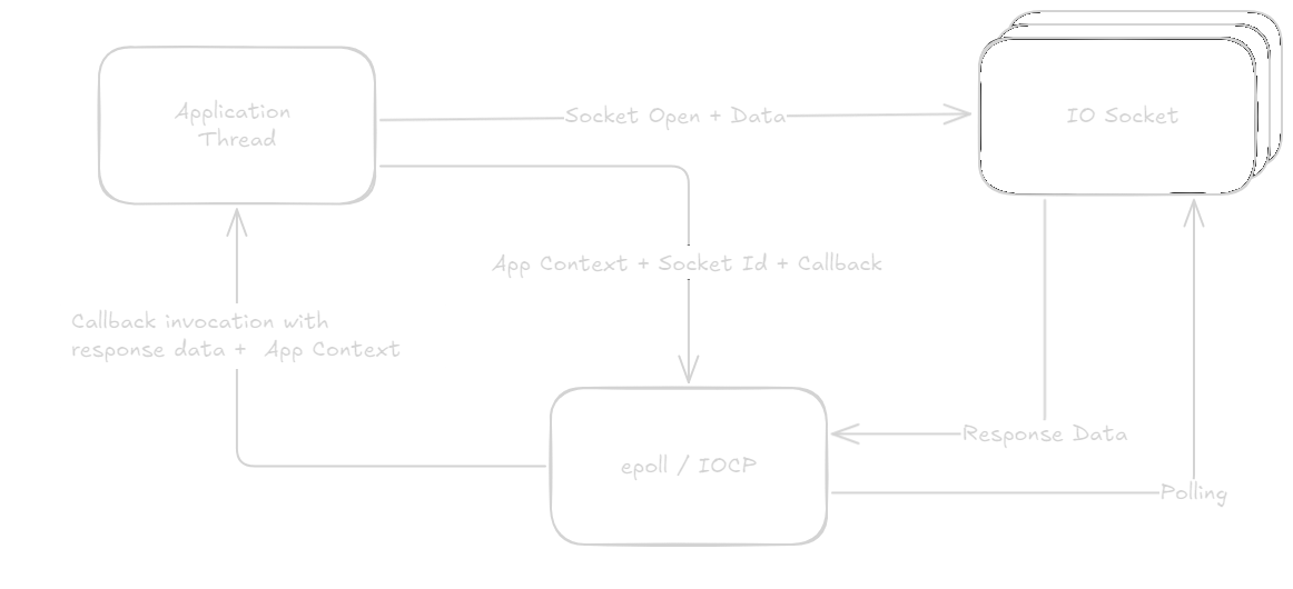 En esta implementación, cuando llega el momento de ejecutar una operación I/O, esta es totalmente delegada al sistema operativo, y el hilo encargado de ejecutar la request es liberado, pudiendo ser asignado a otra request distinta.