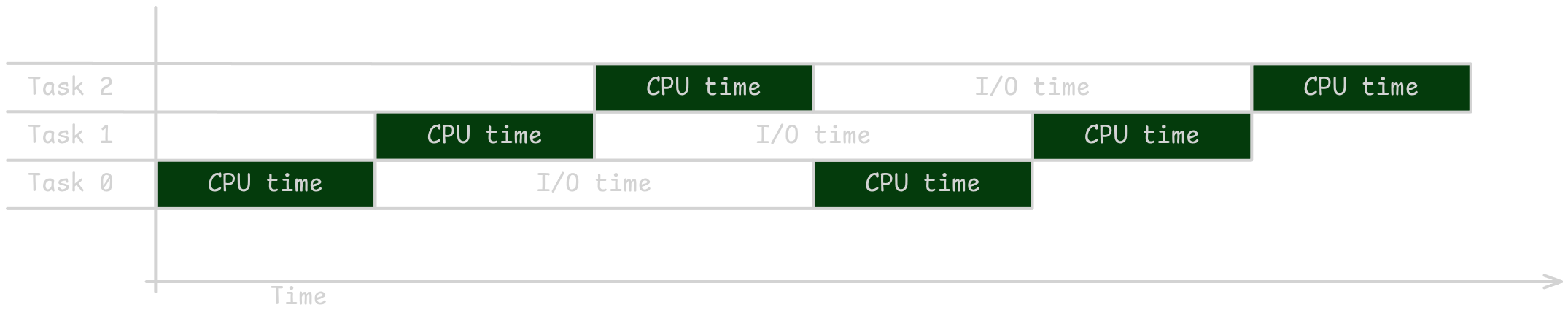 Varias tareas se ejecutan sobre un mismo recurso, cambiando constantemente entre ellas, logrando así una ilusión de simultaneidad. A esto le llamamos “Interleaving”.